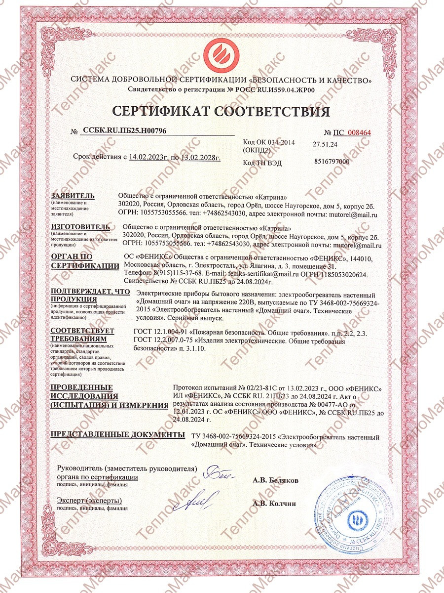 Электрообогреватель настенный «Домашний очаг» Водопад