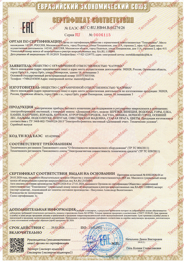 Электрообогреватель настенный «Домашний очаг» Лагуна